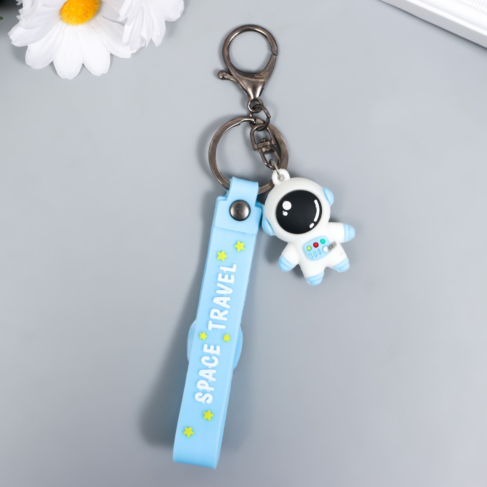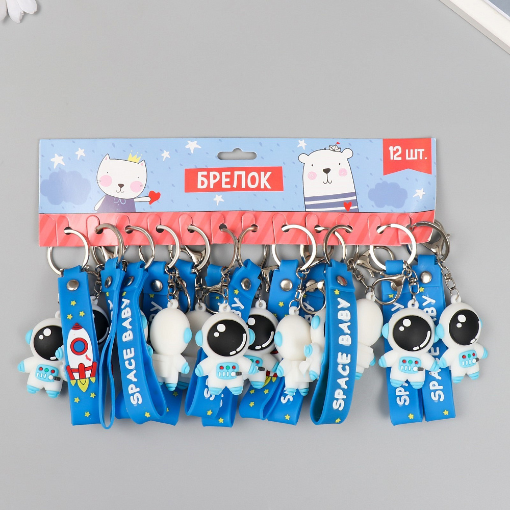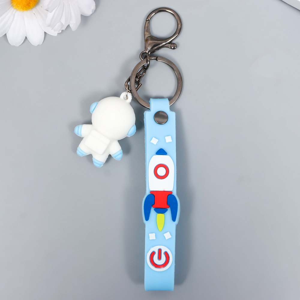 Брелок резина «Космонавт в бело-голубом скафандре» с браслетом и карабином