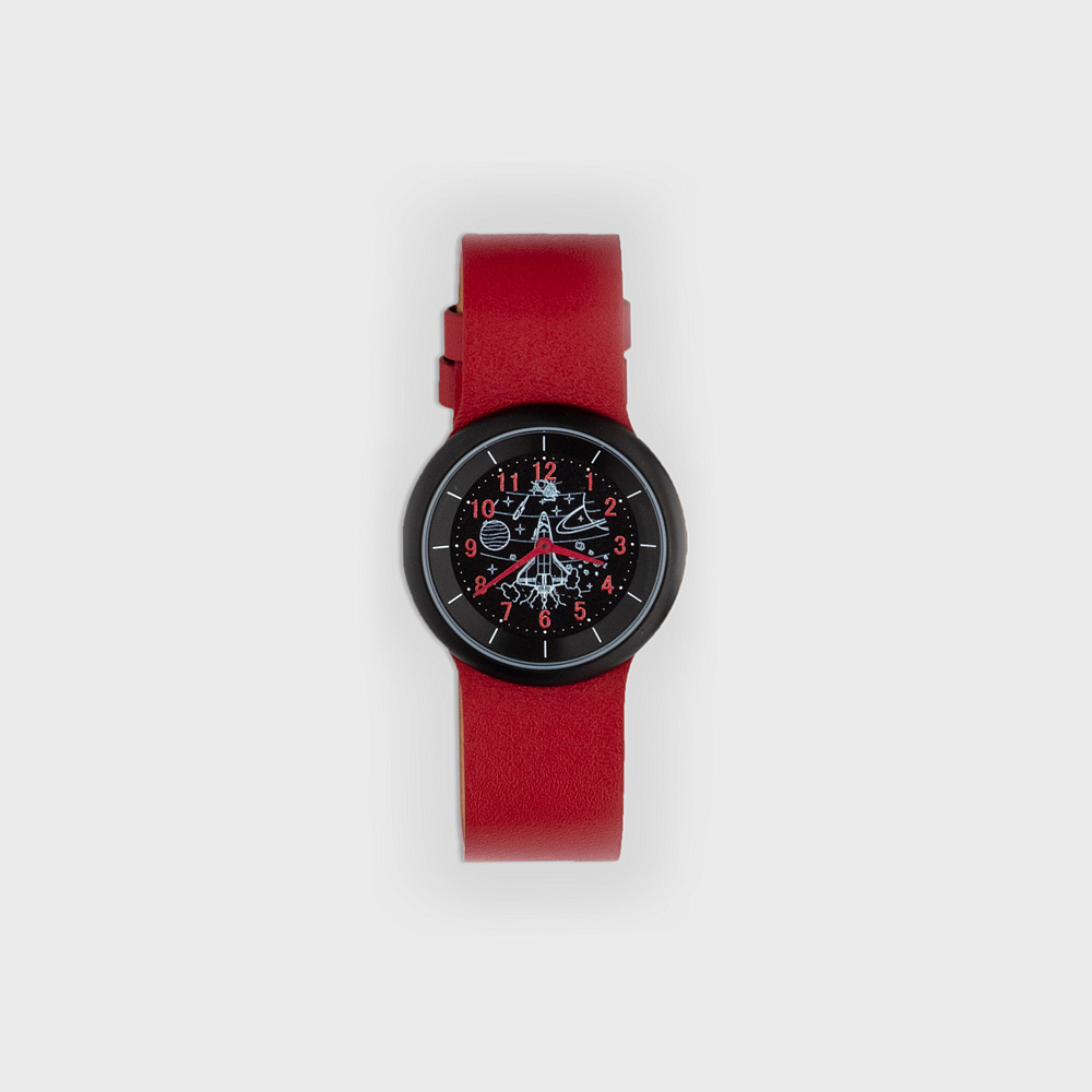 Часы наручные детские «Космос» красный кожаный ремешок