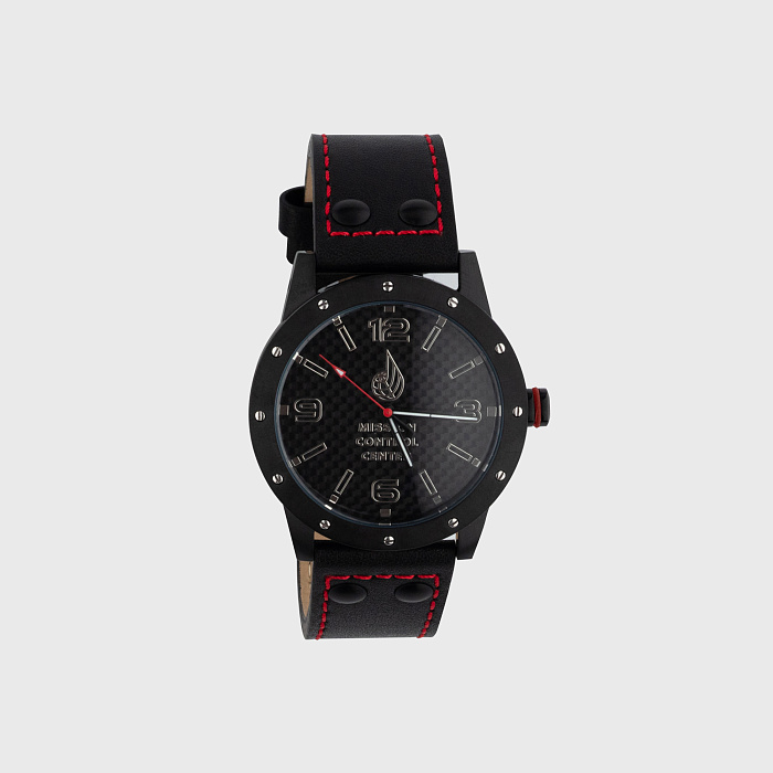 Часы наручные мужские "Часовые пояса ЦУП" прошитый ремешок, красная нить, арт.10000001кк, КТ/ЦМ