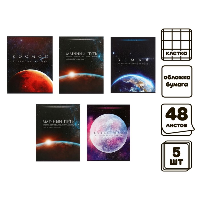 Тетради «Космос», комплект 5 шт., мелованая обложка, 48 л, клетка, 7726065