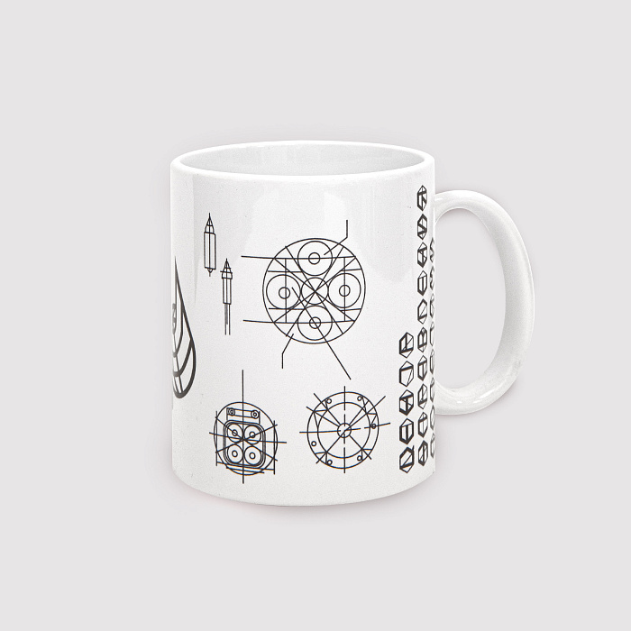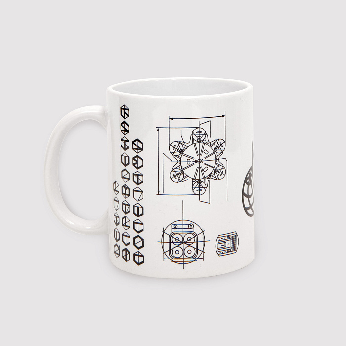 Кружка керамическая Центр управления полетами "Взрыв-схема", прямая, ч/б, КТ/ЦМ